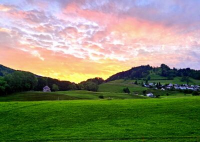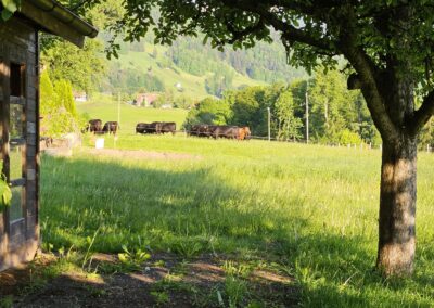 Willkommen auf unserem idyllischen Bauernhof! Hier, umgeben von 24 Hektar unberührter Natur, betreiben wir einen nachhaltigen Landwirtschaftsbetrieb. Unser Hauptfokus liegt auf der Haltung von Mutterkühen der Rasse Dexter – kleinen, robusten schwarzen Kühen, die für ihre hervorragende Fleischqualität bekannt sind. Wir legen grossen Wert auf artgerechte Tierhaltung und vermarkten das Fleisch direkt, sodass Sie die Frische und Qualität aus erster Hand geniessen können.